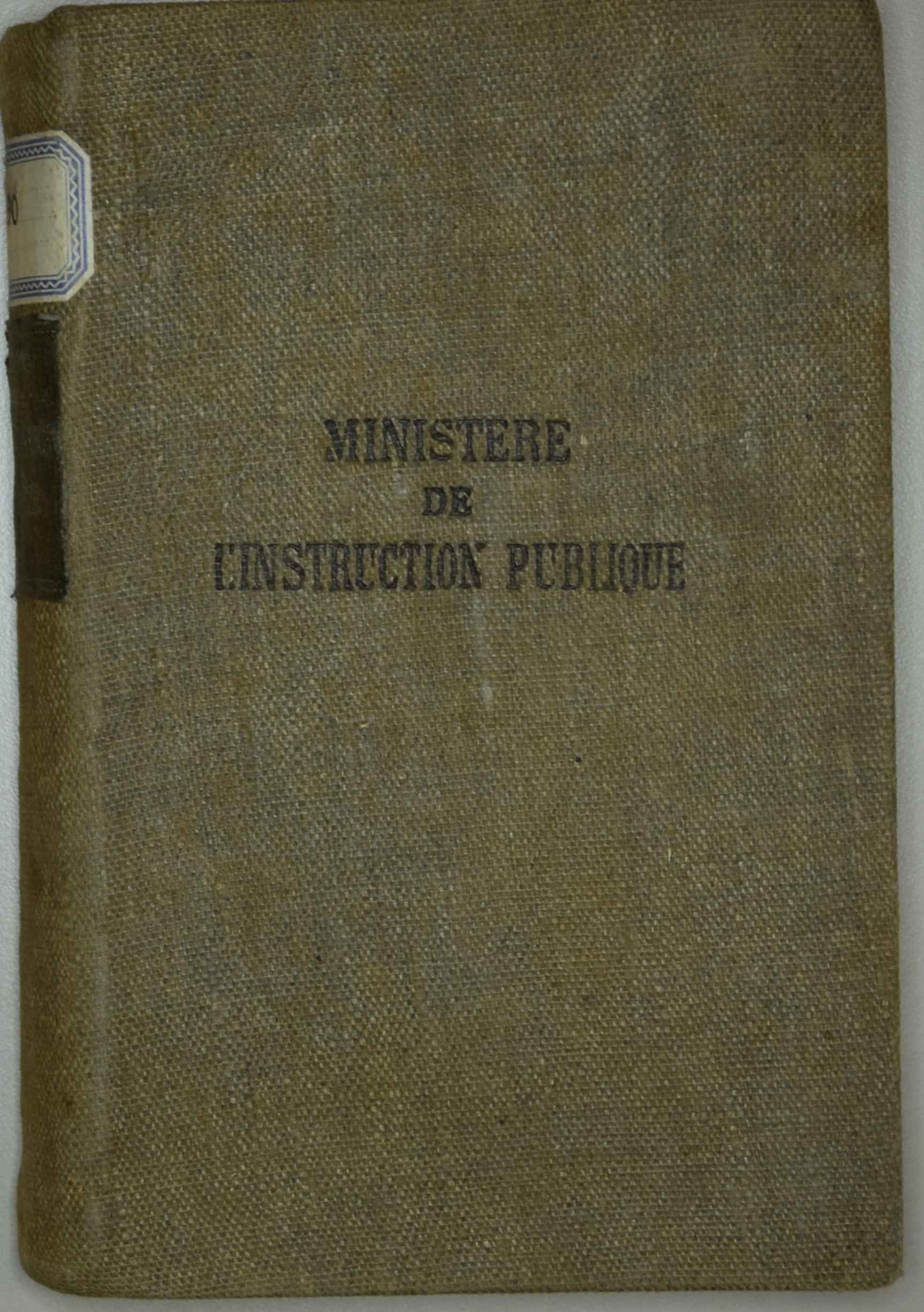 Particularités d'exemplaire : Ministère de l'instruction publique : Inscription sur le plat supérieur : « Ministère de l'Instruction publique » (concession ministérielle)